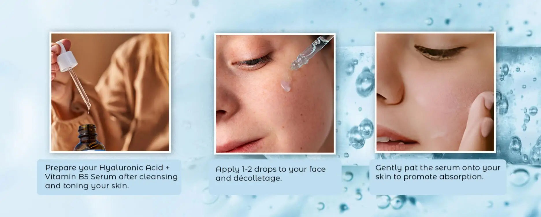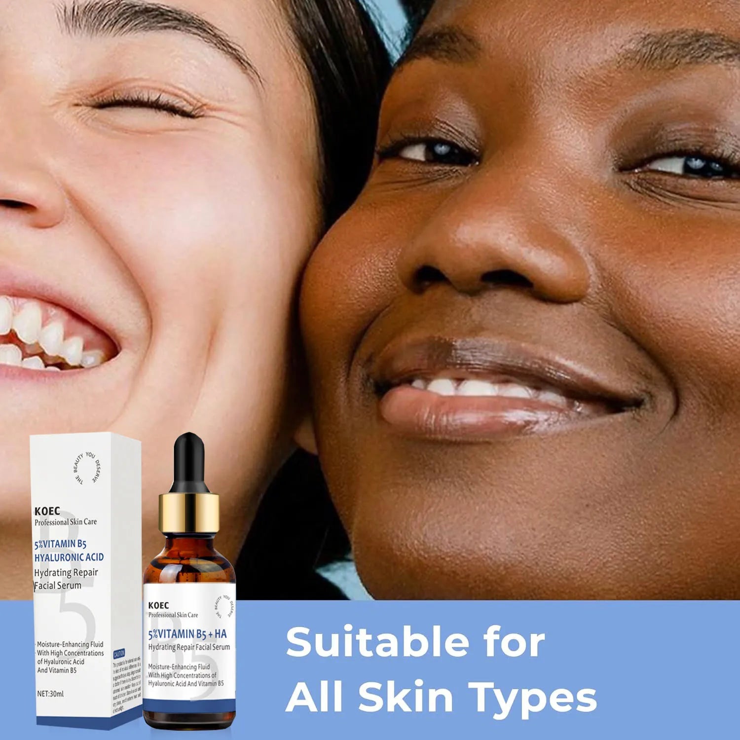 - Unlock the power of dual hydration with our rejuvenating Hyaluronic Acid + B5 Serum. This potent blend deeply nourishes and revitalizes your skin, revealing a radiant, youthful glow. Suitable for all skin types, it's the ultimate solution for achieving a plump, dewy complexion.