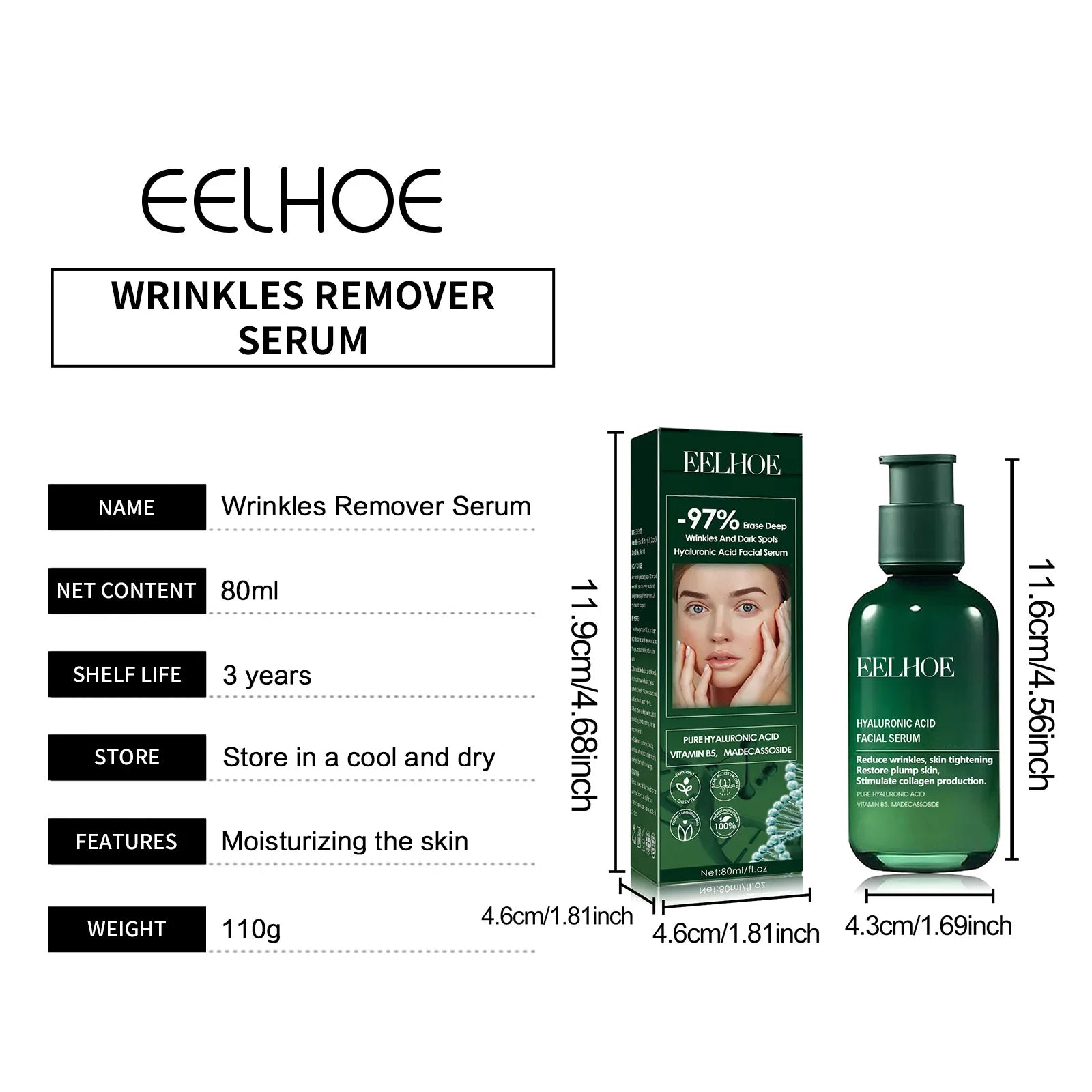 EELHOE Hyaluronic Acid Serum for Face Lifting Firming Skin Care Essence Anti Wrinkles Facial Anti Aging Moisturizing Dark Spots Remover Facial Serum